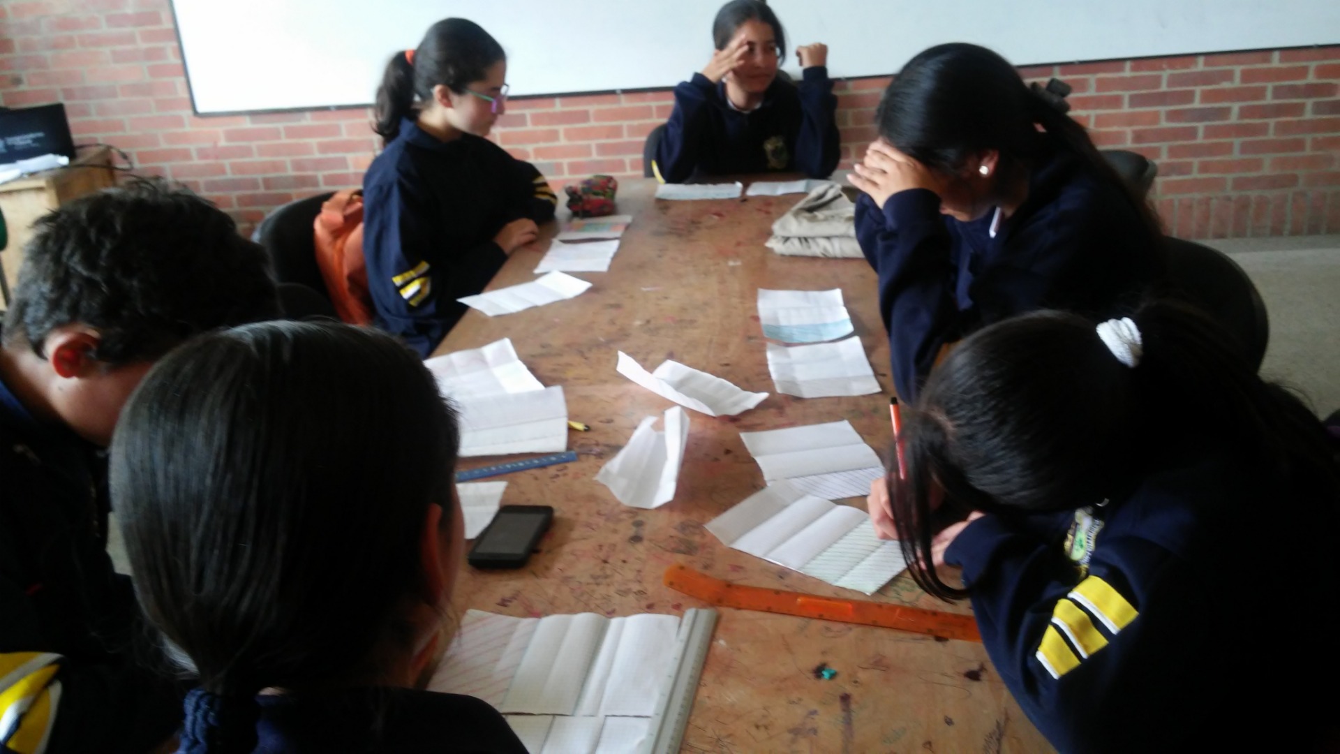 Al terminar la actividad los estudiantes concluyeron que para sumar fracciones de diferente dominador es necesario encontrar un denominador común, el cual en esta actividad se encuentra al doblar una tercera hoja con los dobleces de la primera y segunda hoja, como se aprecia en las siguientes imagenes.