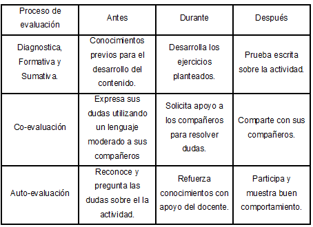 Se valoro la actividad durante toda la clase, con la siguiente matriz.